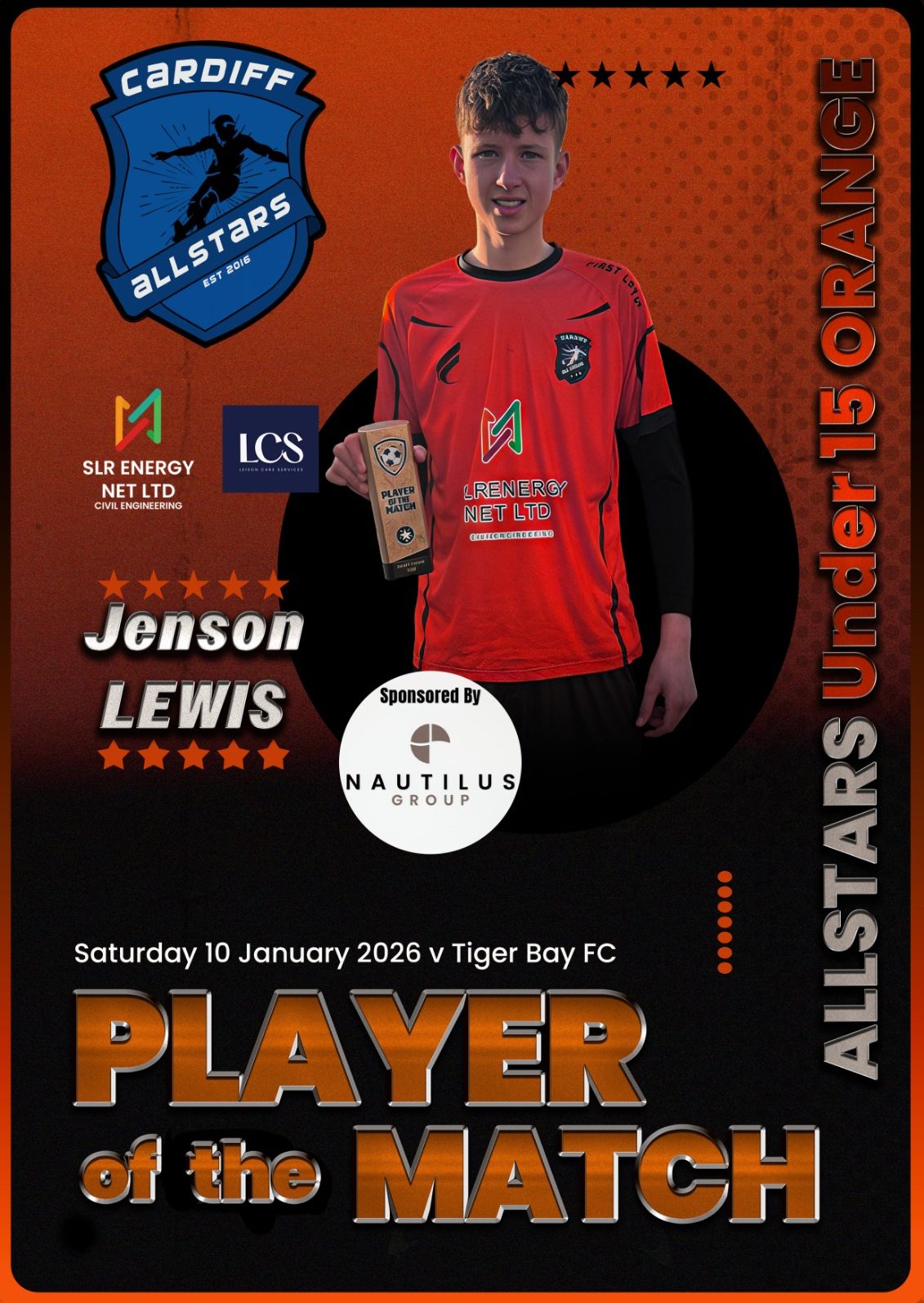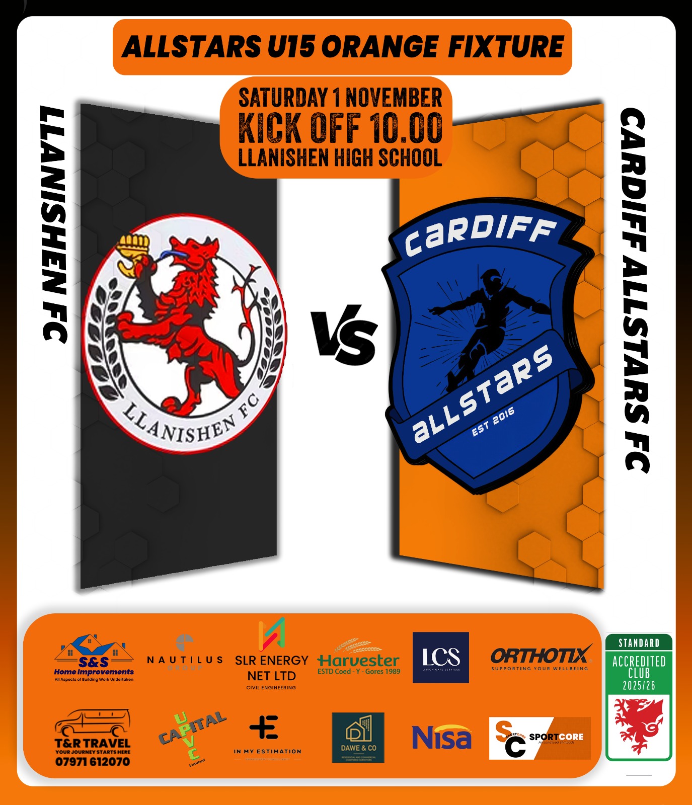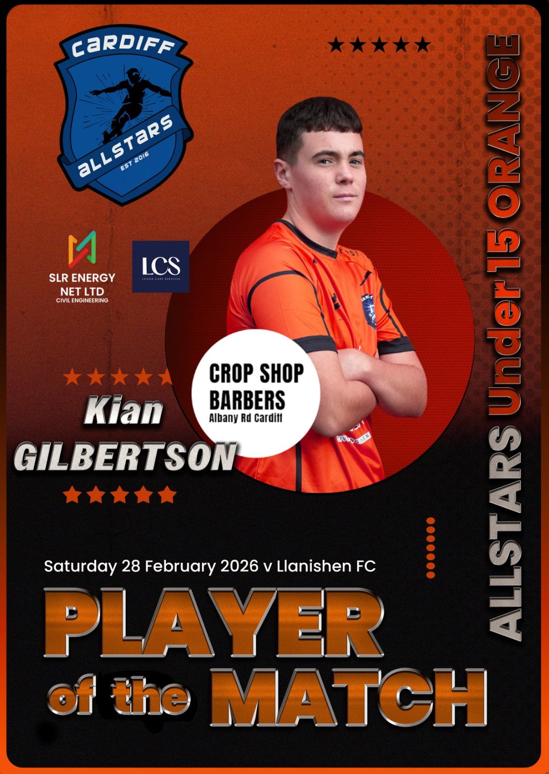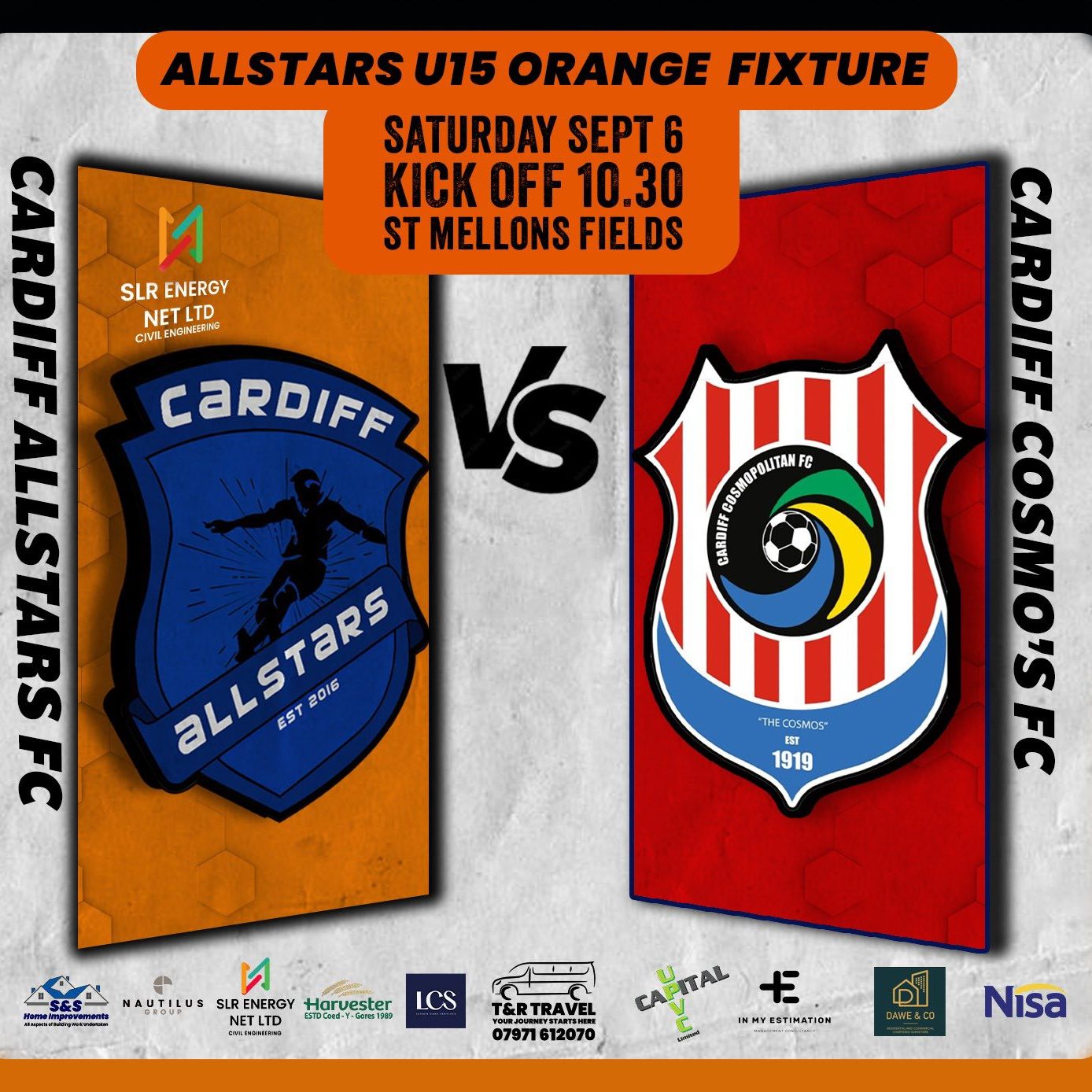 Cardiff Allstars Under 15’s Orange produced an impressive 6-0 win over Cardiff Cosmo’s FC Under 15’s.