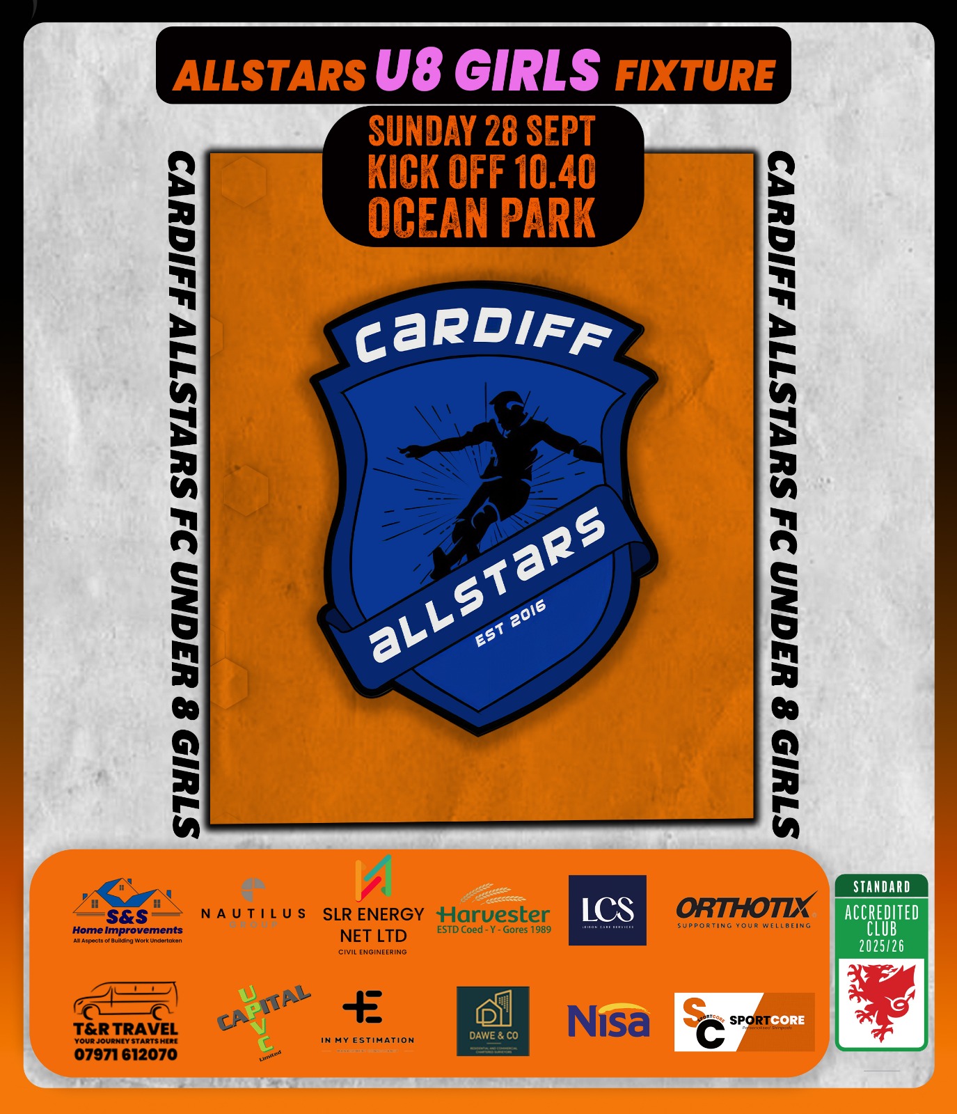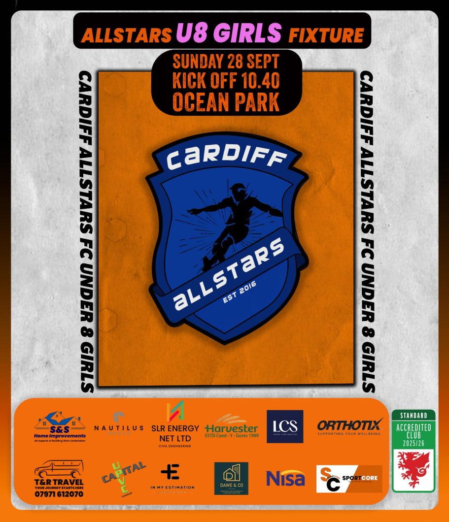 The Under 8’s Girls Team is a wonderful addition to the Cardiff Allstars family, and we’re proud to welcome them to our club. Here’s to a season full of goals, smiles, and unforgettable moments on the pitch!