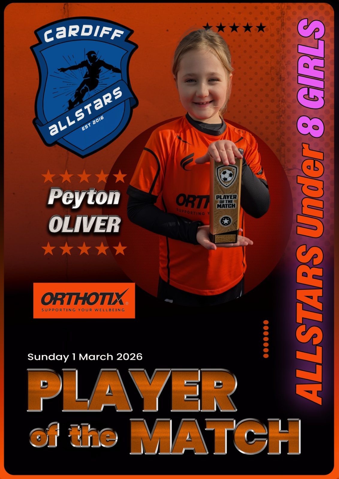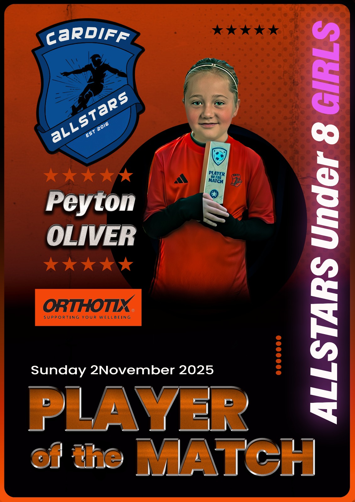 💫 Player of the Match: Peyton - who never stopped chasing the ball and came incredibly close to scoring straight from her own corner kick!
