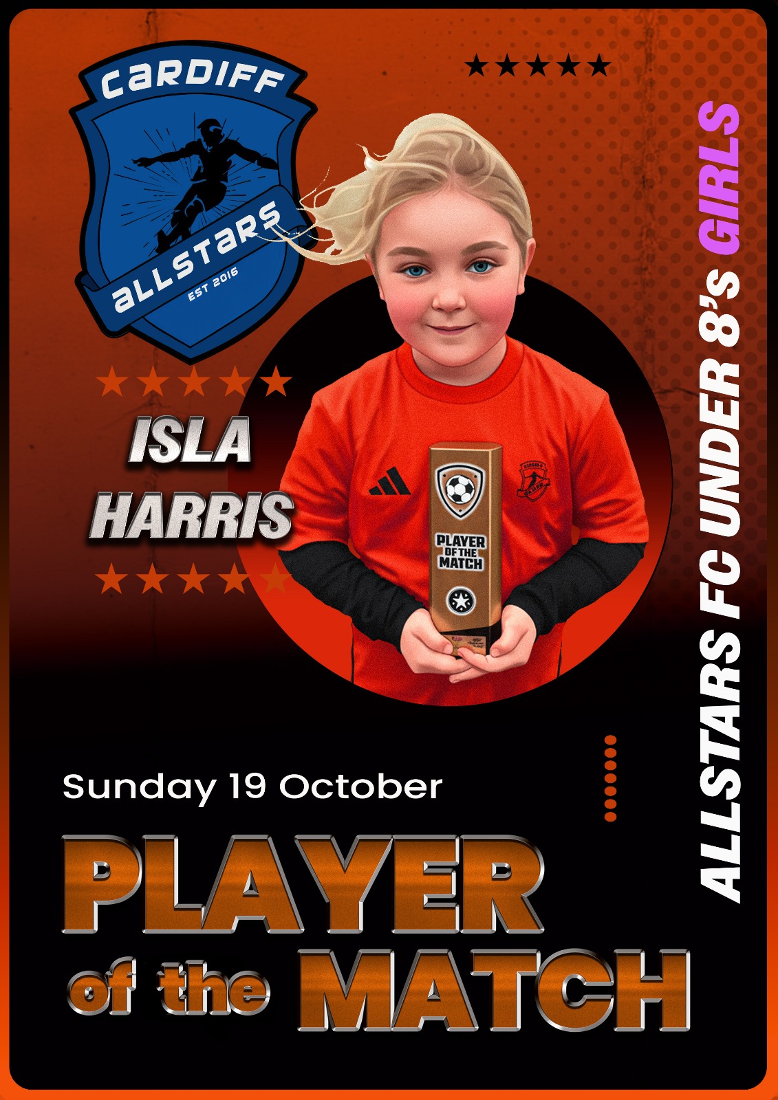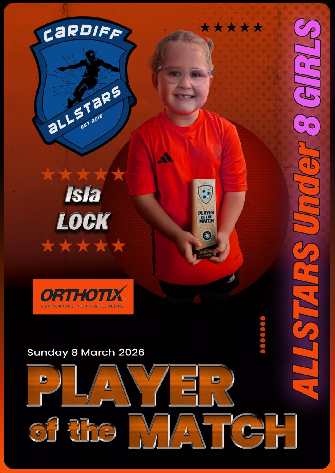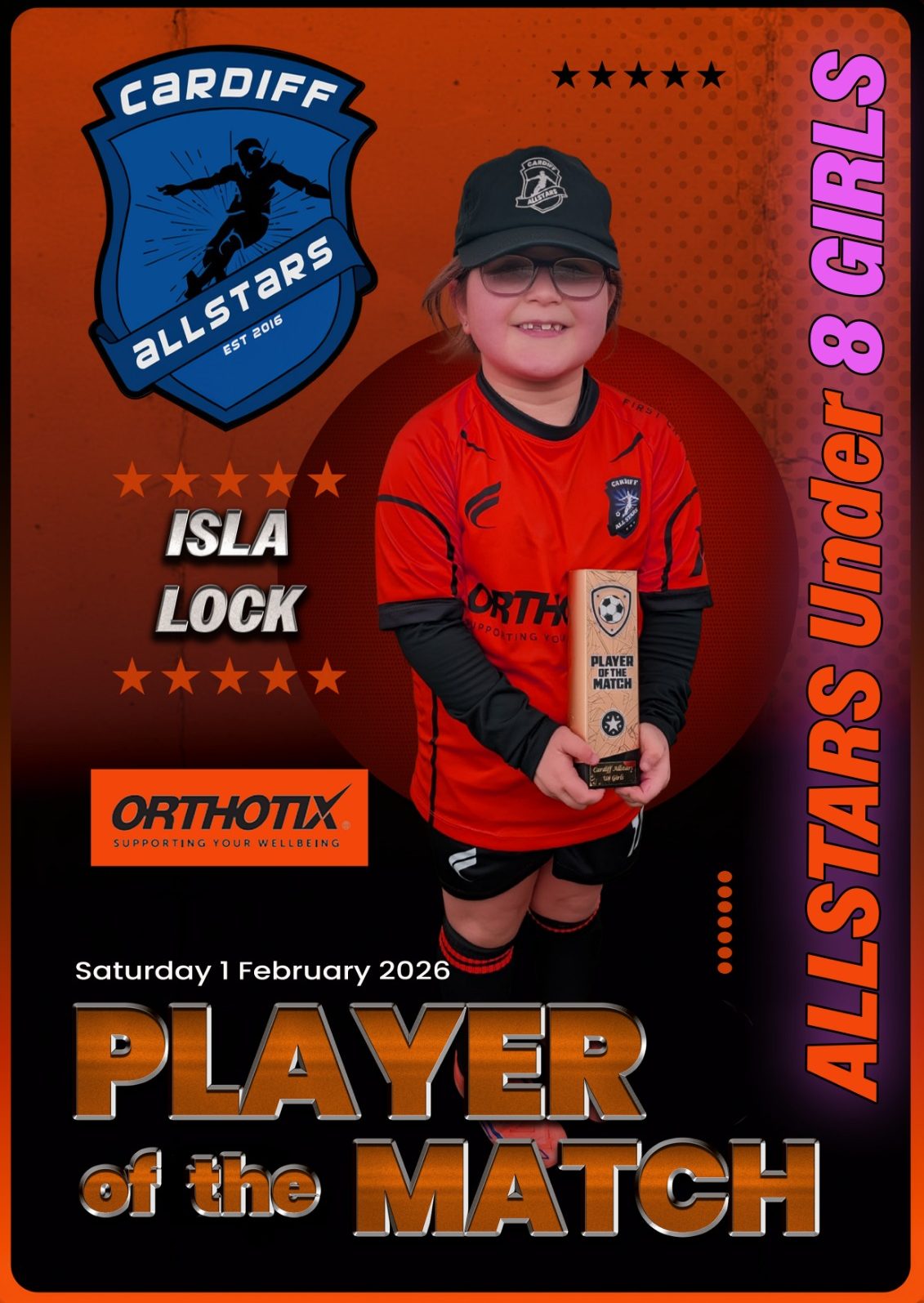 A big welcome to our newest Allstar, Abigail! What a debut — 110% effort from start to finish and even a goal to top it off. Brilliant work, Abi, and welcome to the Allstars family!